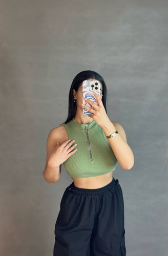 کراپ جلو زیپدار سبز ترند