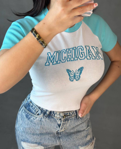 کراپ تیشرت بنفش پروانه
