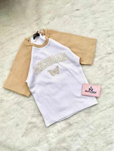 کراپ تیشرت کرمی دو رنگ