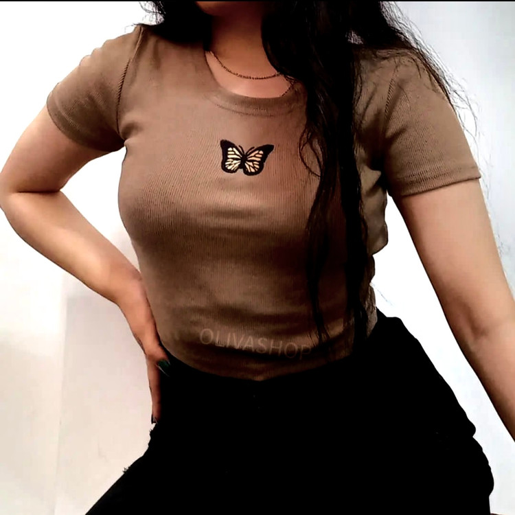 کراپ تیشرت قهوه ای پروانه